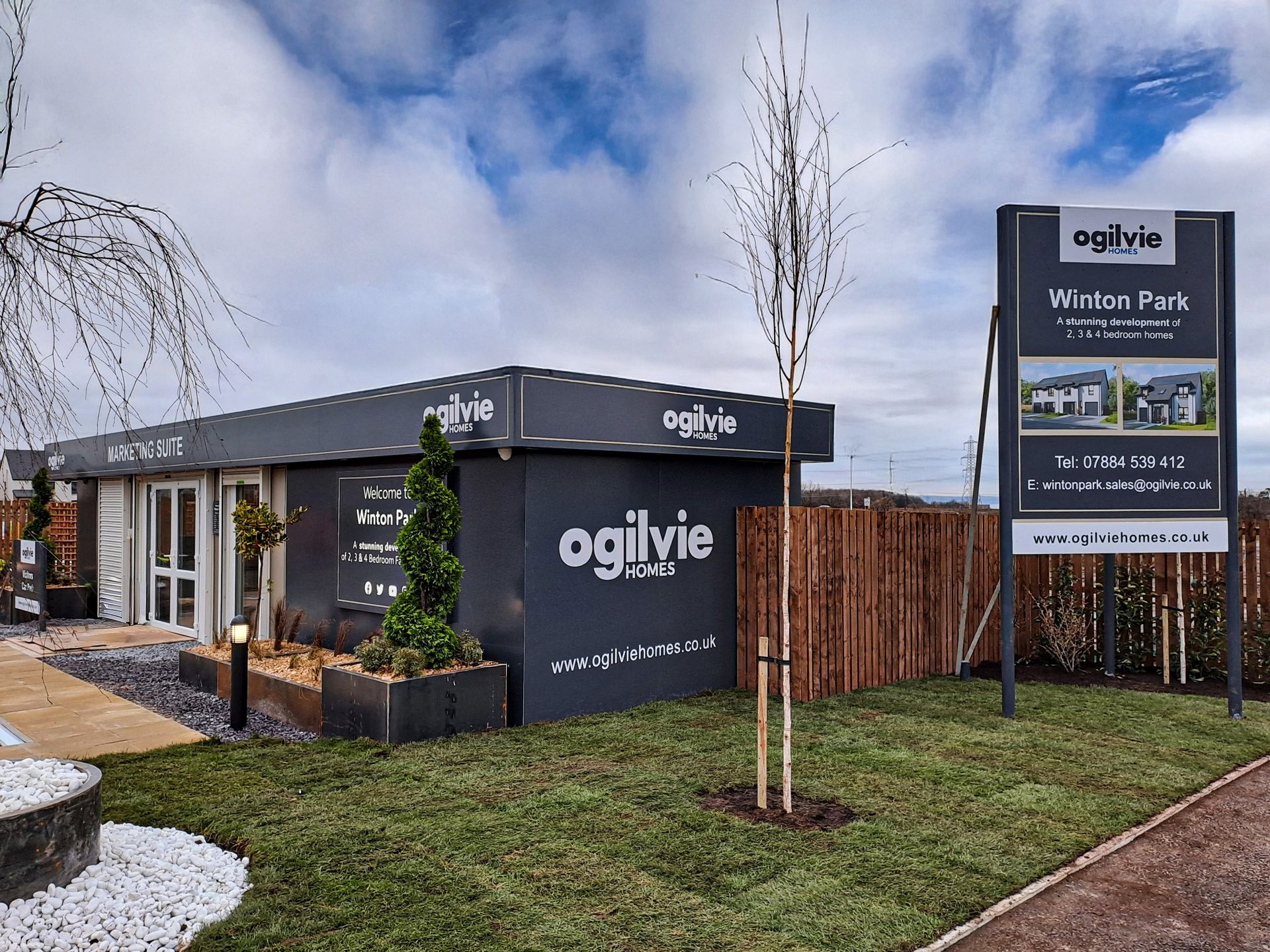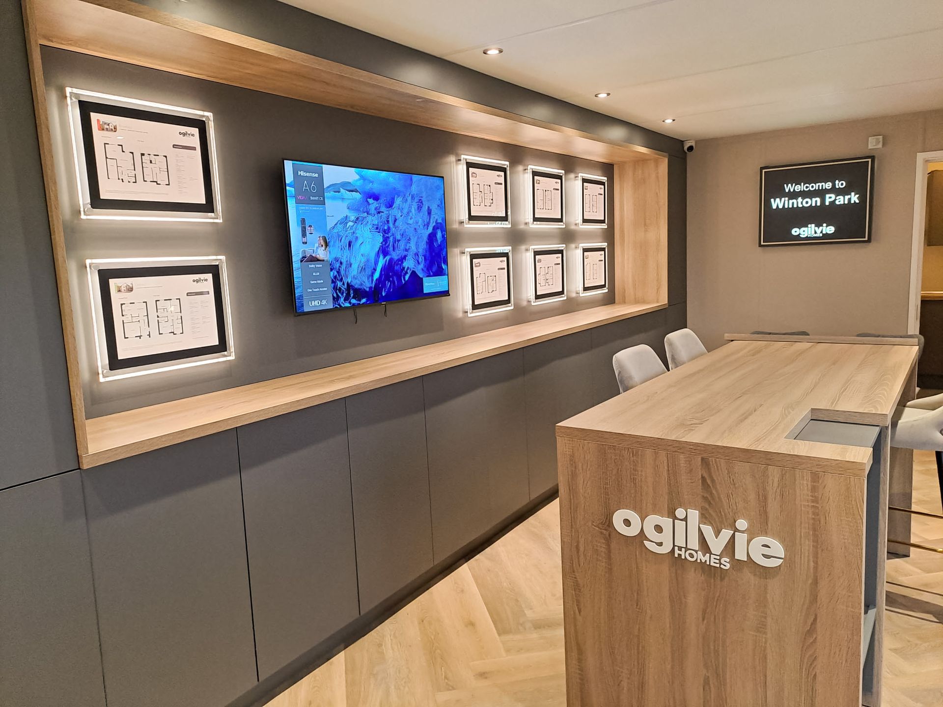 At Ogilvie Homes’ Winton Park development in East Kilbride, we were appointed to deliver a complete internal and external signage package alongside a full marketing suite fit-out to support the launch and presentation of the site.