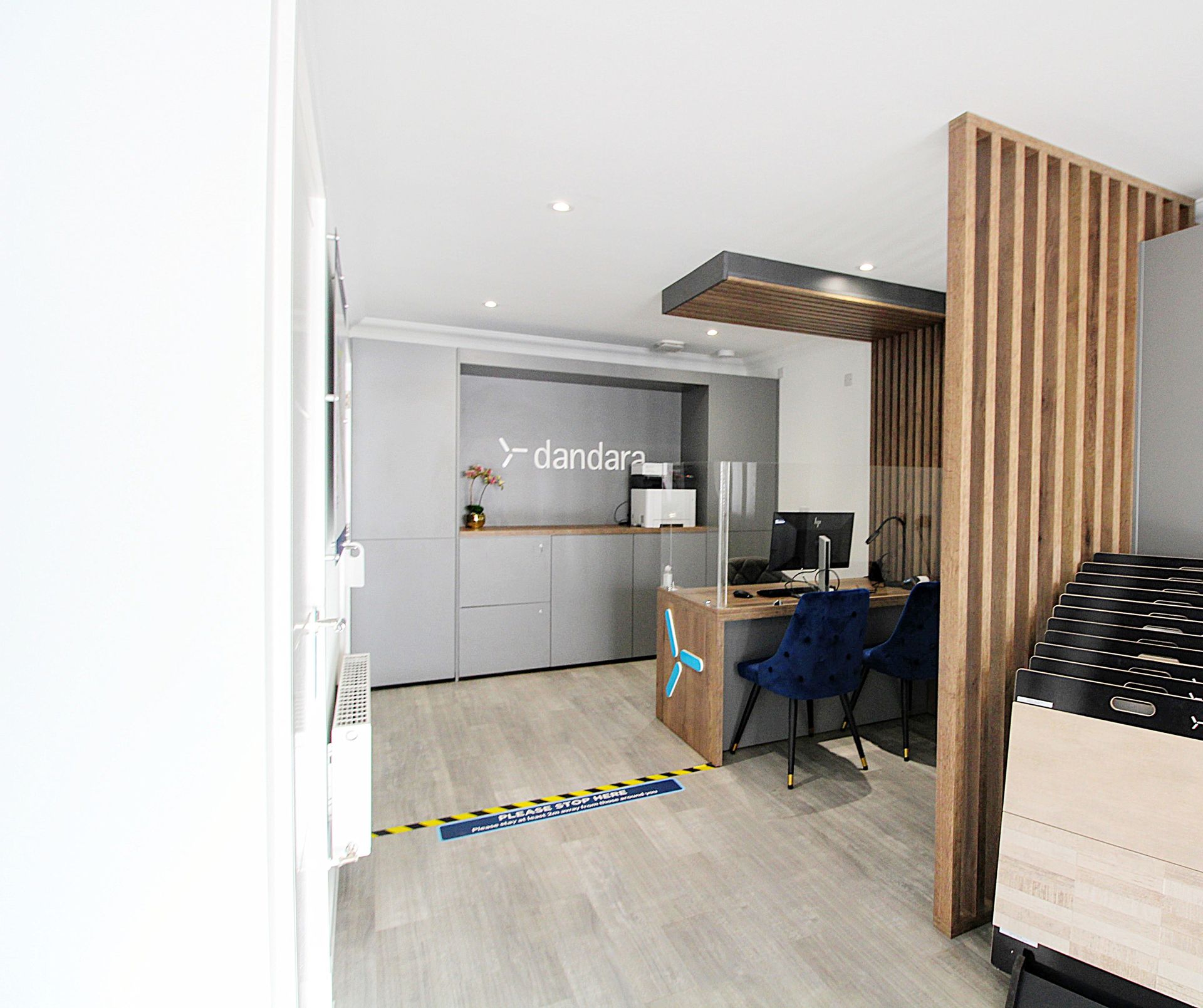 We partnered with Dandara to deliver a complete marketing suite fit-out at their Shawfair development, creating a space that was both functional and visually striking. The project included a full internal fit-out along with external building signage, ensuring a strong brand presence from the moment visitors arrived.