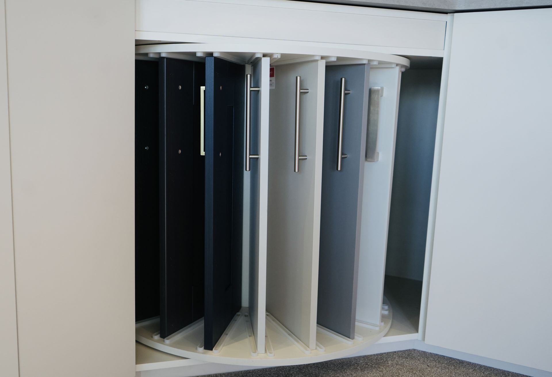 The internal garage marketing suite was transformed into a functional and welcoming sales environment, featuring a bespoke sales desk area, a dedicated choices room with a custom-designed carousel storage system, and a comfortable seating area for visitors. Each element was designed and manufactured to enhance both usability and customer experience.