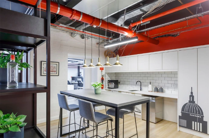Our work included a custom reception desk, cabinetry engraved with the iconic London skyline, a modern tea prep area, and the signature Beefeater Guard House that was hand painted. Every element was designed, manufactured, and installed in-house, ensuring a cohesive aesthetic and a high-quality finish that reflects Beefeater’s heritage and brand identity.